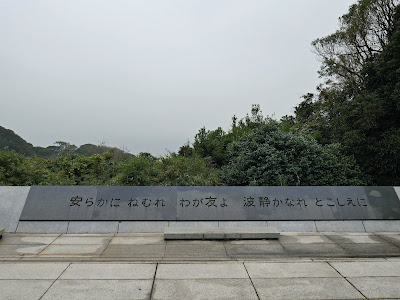 戦没船員の碑。この向こうに海原が広がっている……はずが、ほとんど何も見えず。